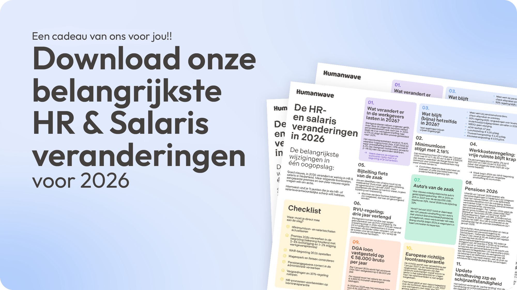 In 2026 veranderen er weinig grote HR- en salariszaken, en dat is goed nieuws. Toch vragen de stijgende loonkosten, veranderende premies en nieuwe regels om aandacht. Om het je makkelijk te maken, hebben wij alle belangrijke wijzigingen voor 2026 ...