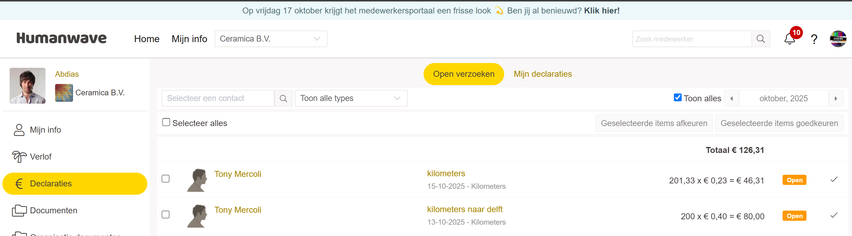 Dan heb je extra rechten in Humanwave (bijvoorbeeld als manager of HR-verantwoordelijke).