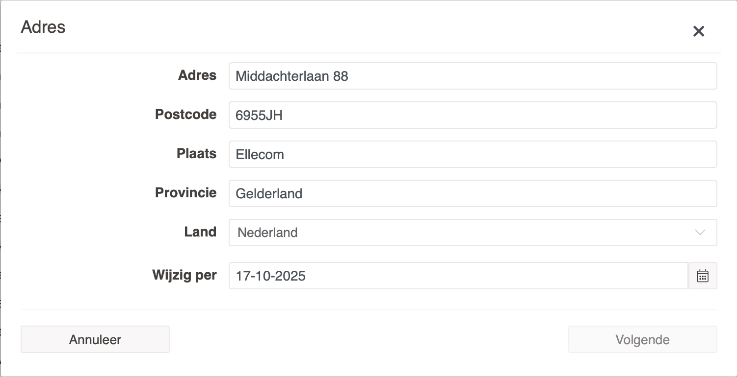Vul bij ‘Wijzig per’ de datum in waarop het nieuwe adres ingaat: