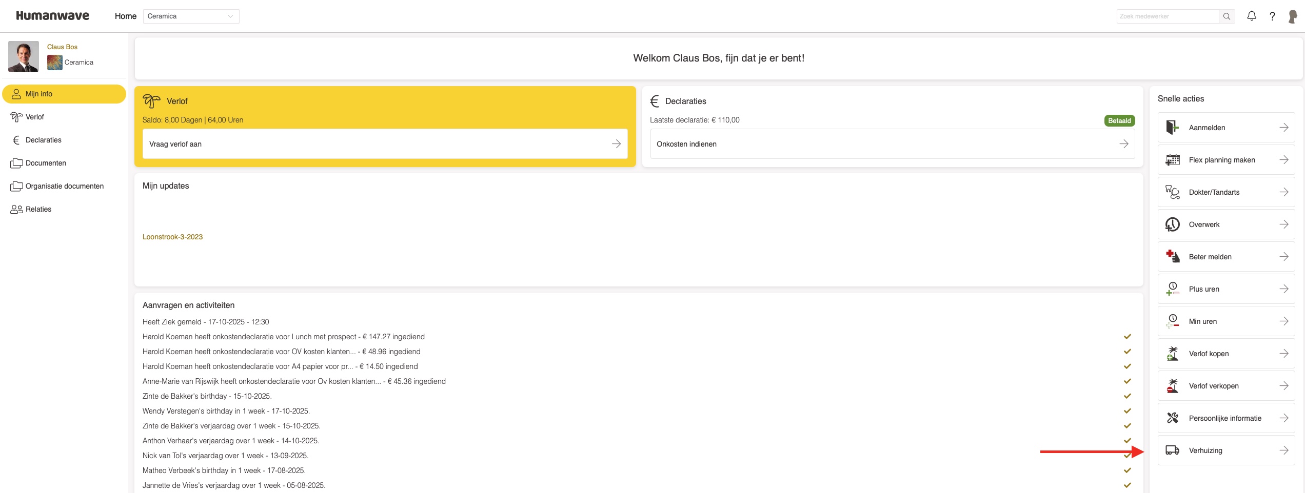 Dit geldt vooral bij adreswijzigingen, die je eenvoudig zelf kunt doorvoeren in Humanwave.