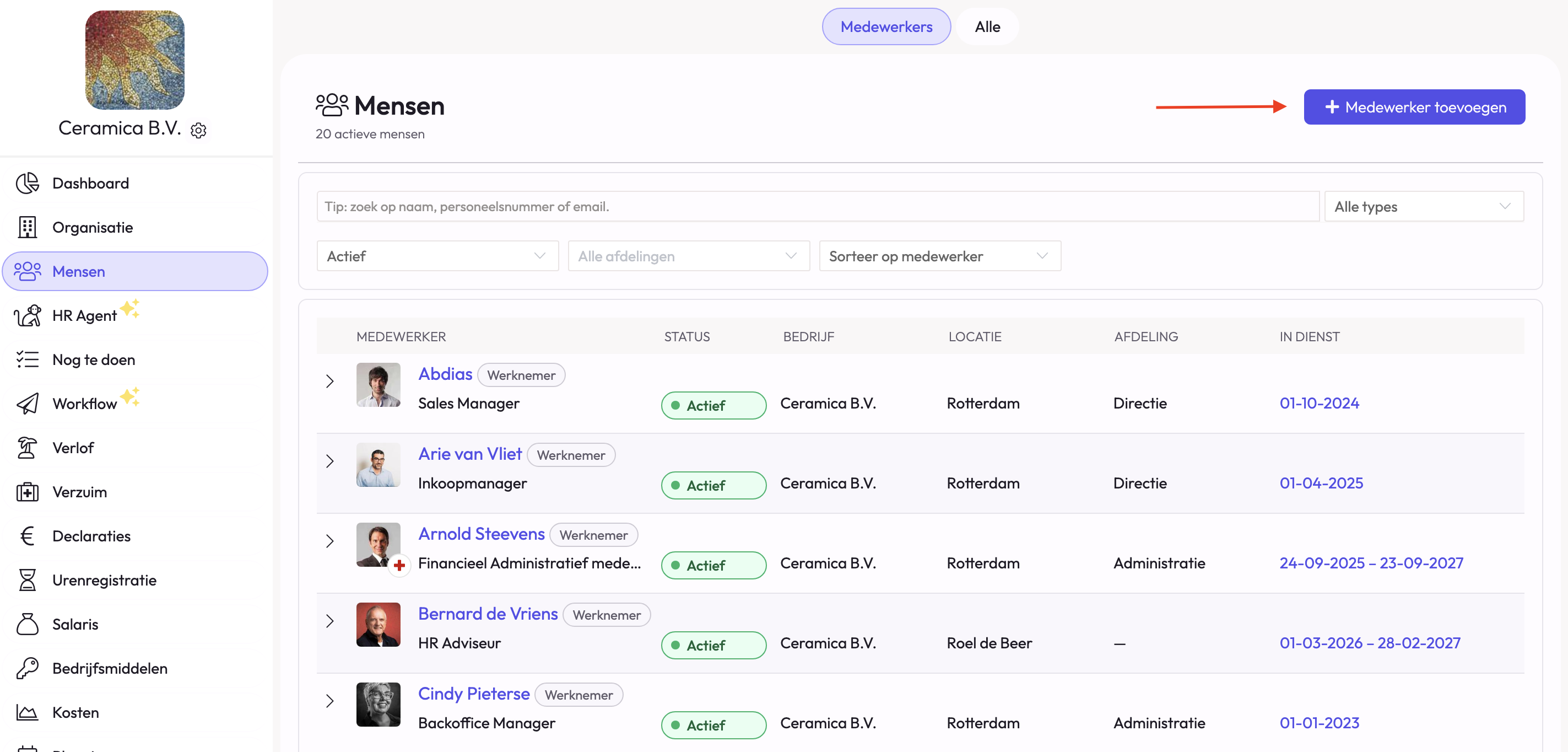 Maak in het tabblad 'Mensen' een nieuwe medewerker aan