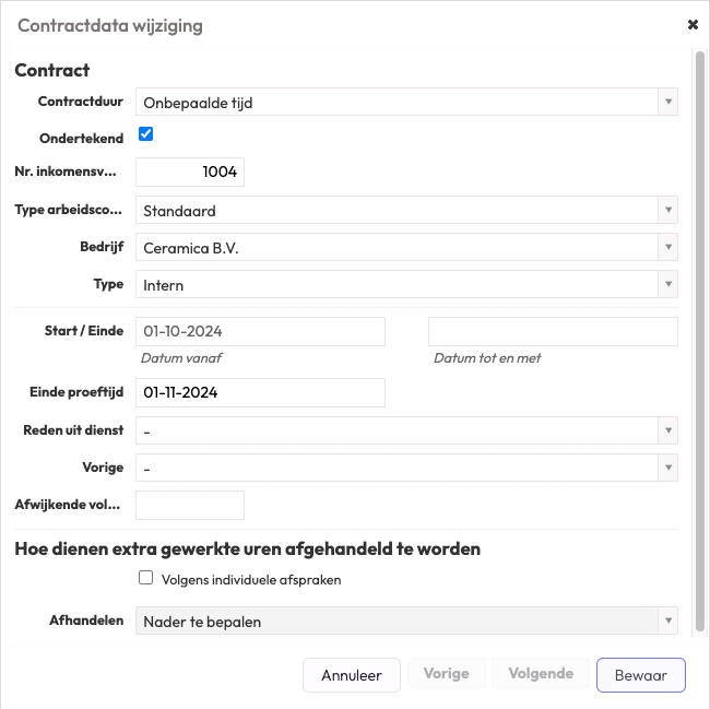 Naast dat je op bedrijfsniveau een voorkeur kan instellen voor het afhandelen van de minder of extra gewerkte uren, kun je dit ook per medewerker vastleggen.