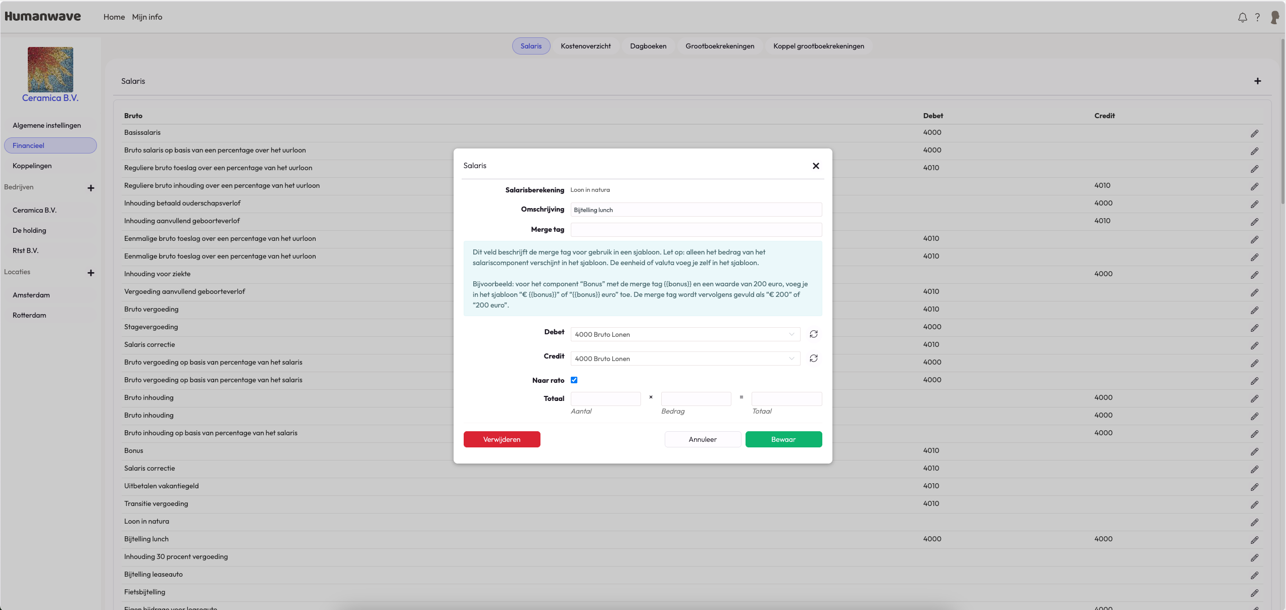 Als je het component aanpast kan je een bedrag instellen; als je afrekent op de werkelijk genoten lunches, dan voer je hier het bedrag €4,05 (2026) in.