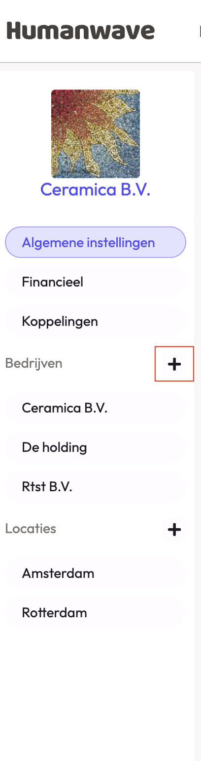 In Humanwave bestaat de mogelijkheid om in je organisatie meerdere bedrijven aan te maken. Wanneer meerdere BV's onder één organisatie of bedrijf vallen hoef je niet voor elk bedrijf een nieuw Humanwave account aan te maken, maar kan je deze eenvoudig onder de organisatie hangen. Per bedrijf kan je weer medewerkers toevoegen en hen eventueel verlonen. Hoe je bedrijven toevoegt, wordt hieronder beschreven.