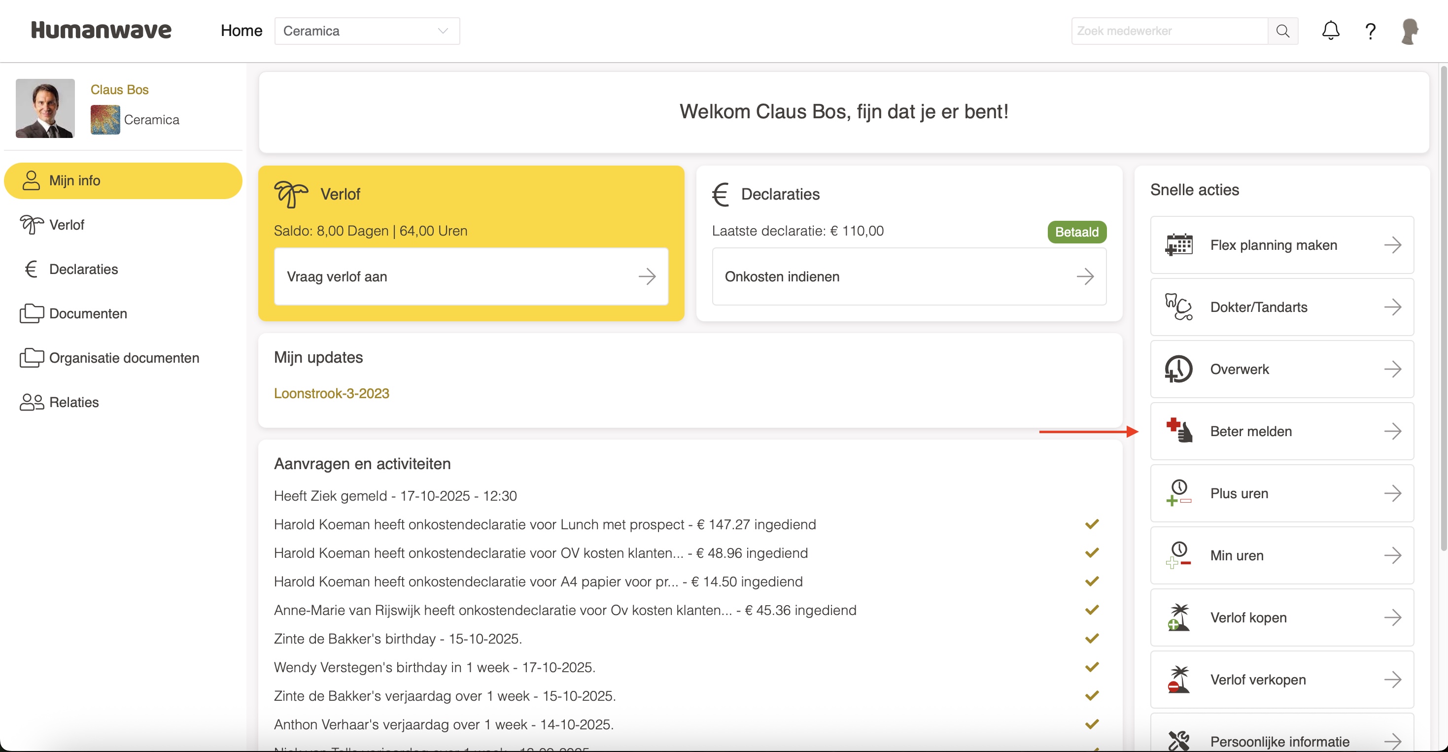 Je kunt jezelf 24/7 online beter melden via je dashboard in Humanwave.