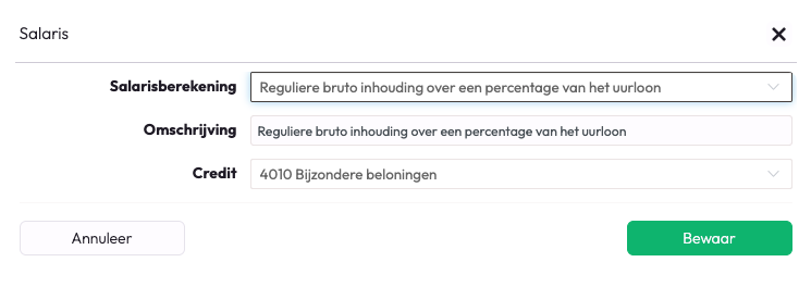 Kies bij berekening voor "Reguliere bruto inhouding op basis over een percentage van het uurloon".