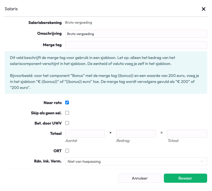 Ga naar de Instellingen van de organisatie, en klik door naar Salaris. Controleer of het inhoudingscomponent reeds is aangemaakt.
