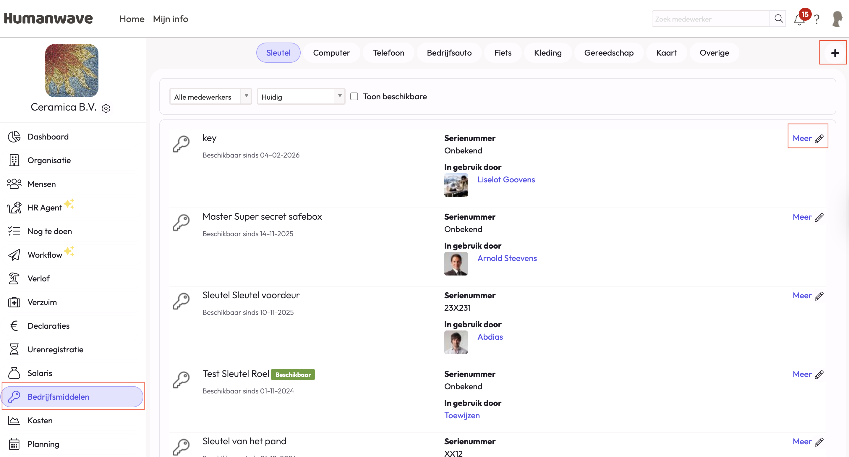 Bedrijfsmiddel toevoegen vanuit profiel van de medewerker