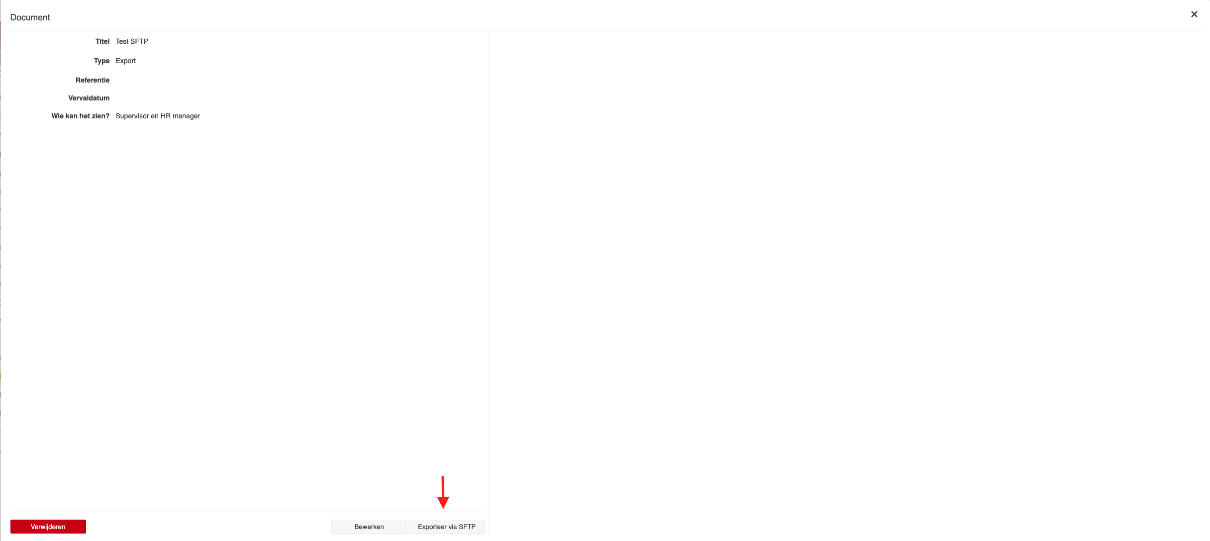 - Verzenden: Selecteer het gewenste document en klik op de knop Exporteer naar SFTP.