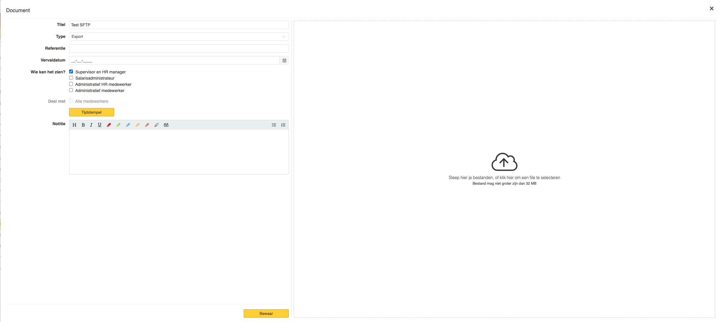 - Als de overdracht is geslaagd, verschijnt de melding: 'Succesvol geupload naar SFTP' onder het document.