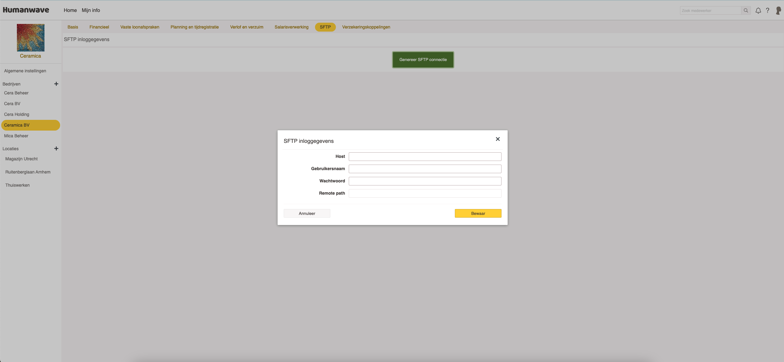 Met een SFTP-koppeling wissel je gegevens tussen Humanwave en externe systemen automatisch en veilig uit.