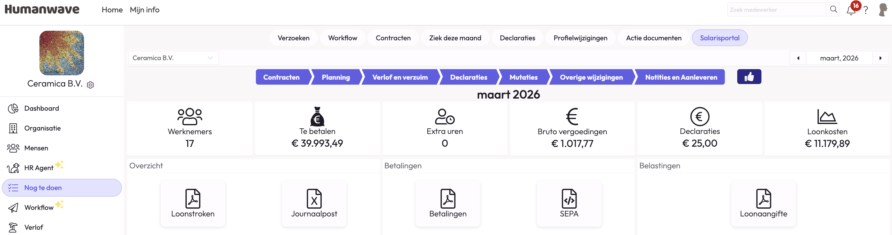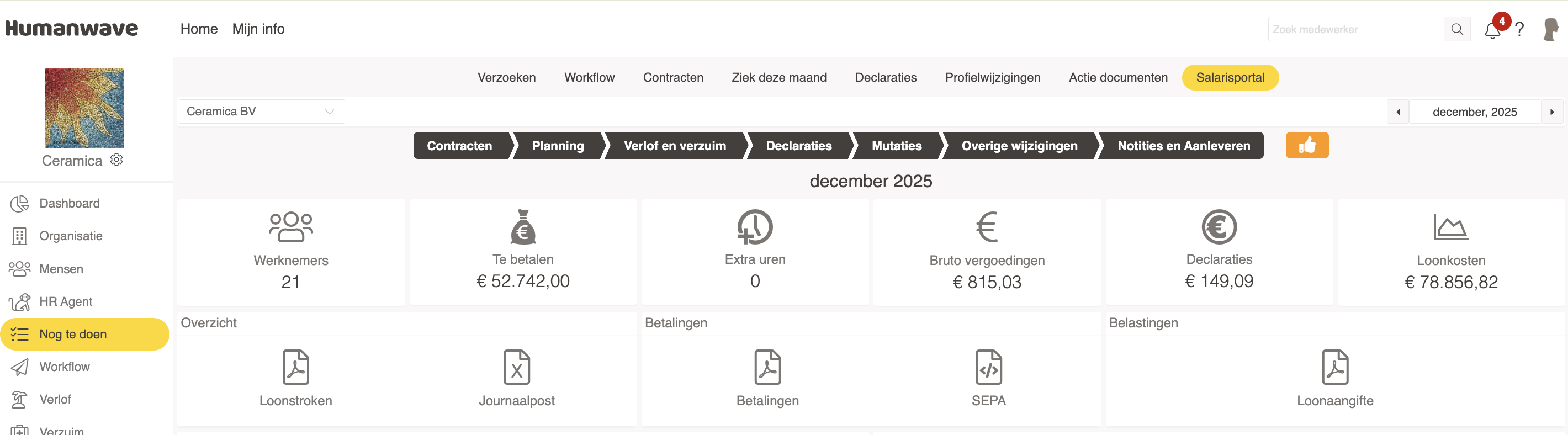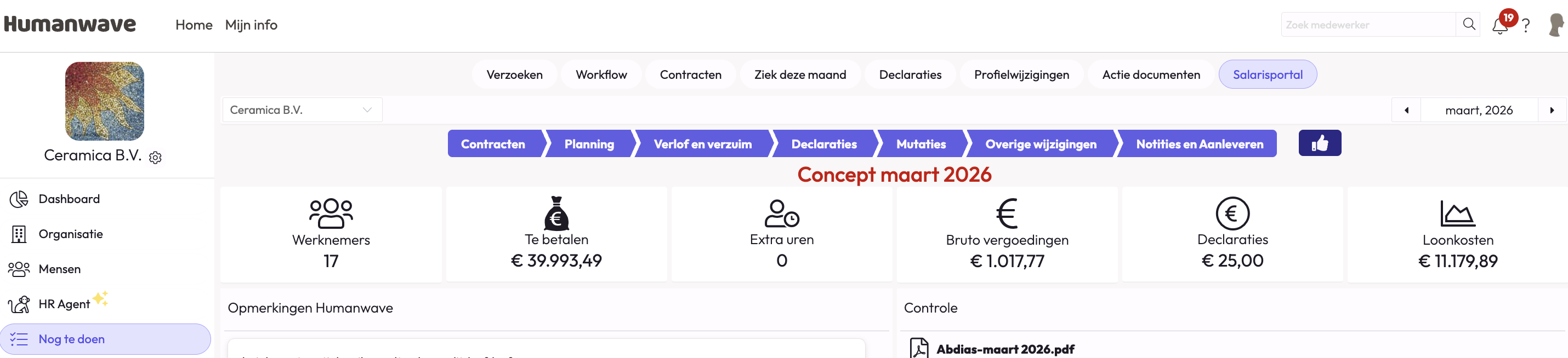 De mutaties, concept loonstroken en definitieve bestanden worden niet meer uitgewisseld via de e-mail maar zijn eenvoudig op één plek terug te vinden in Humanwave. Zo heb je 24/7 inzicht in alle HR en salarisgegevens.