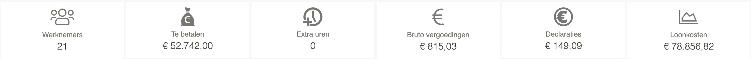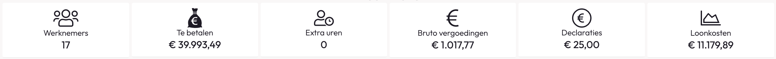 Naast de concept loonstroken en het rapport ‘Vergelijk salarisperioden’ bieden wij je nog meer belangrijke stuur informatie aan van de loonperiode. Je ziet wat de verwachte netto betaling zal zijn, de extra’s van deze maand en de totale loonkosten