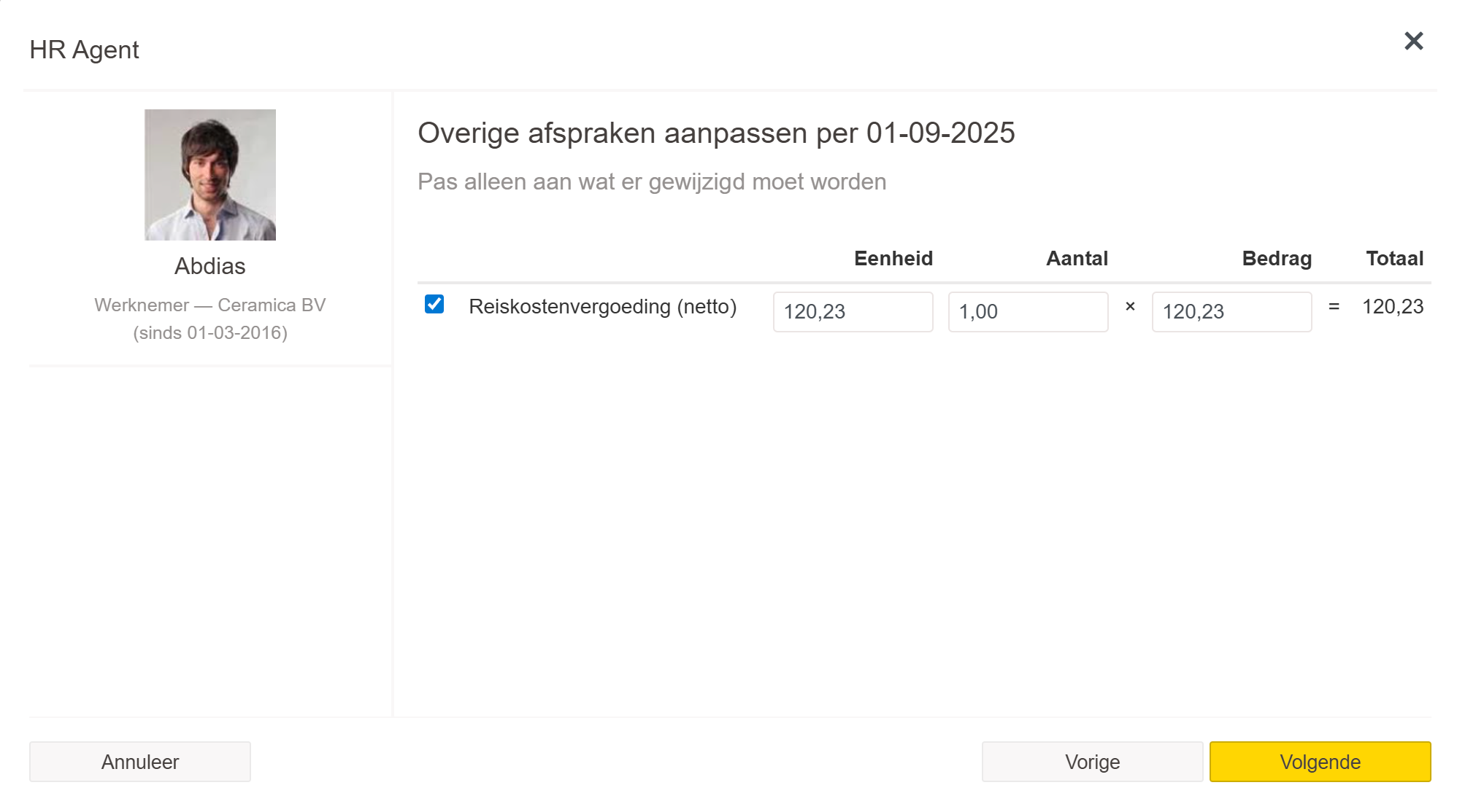 Mocht er geen wijziging in het salaris zijn, dan kun je op ‘Volgende’ klikken.