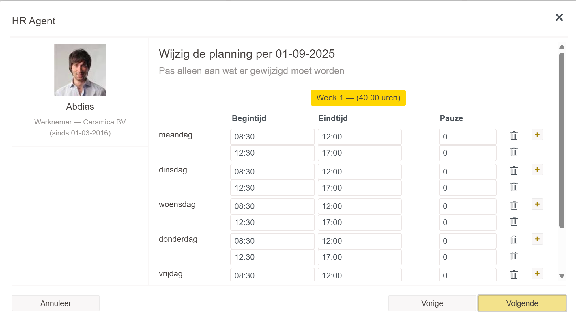 De huidige planning wordt automatisch ingevuld, hier hoef je dus alleen de wijziging in te vullen.