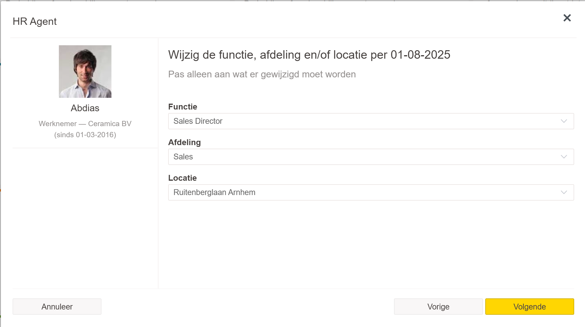 Vul eventuele wijzigingen in de functie, afdeling en/of locatie in.