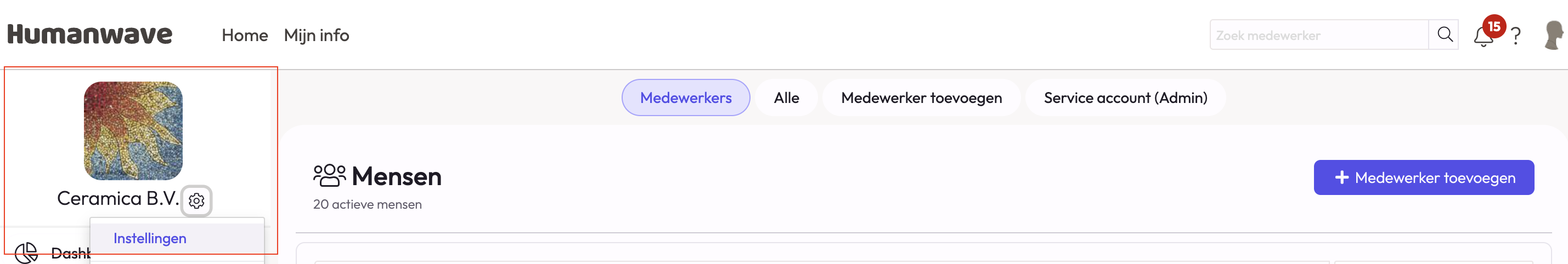 Ga naar de algemene instellingen van de organisatie