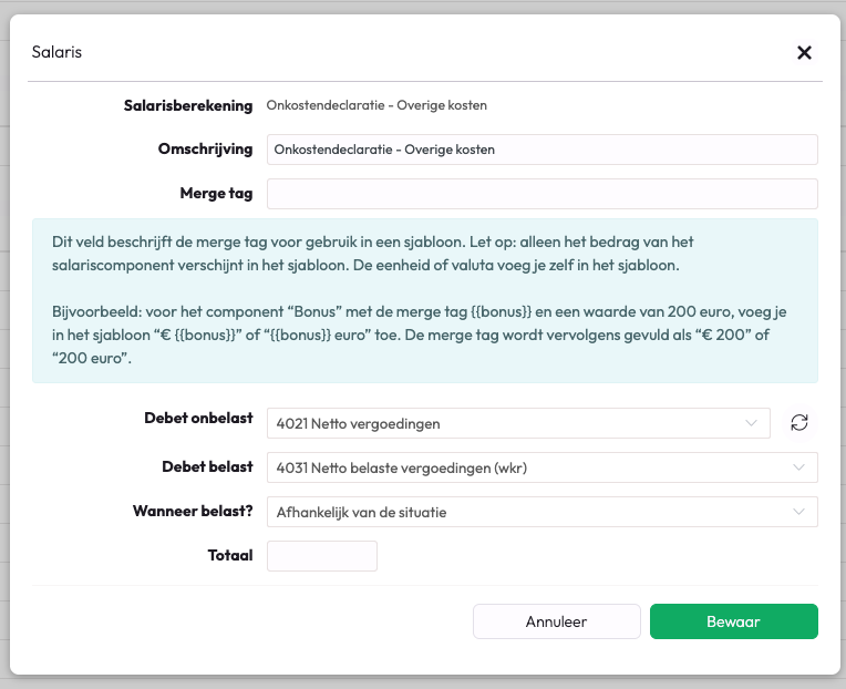 Inrichten Onkostendeclaratie - Overige kosten voor de WKR