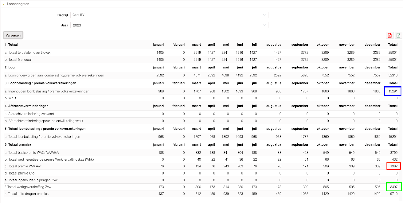 Controleer vervolgens alle premies vanuit de loonaangiften overeenkomen met de loonjournaalpost.