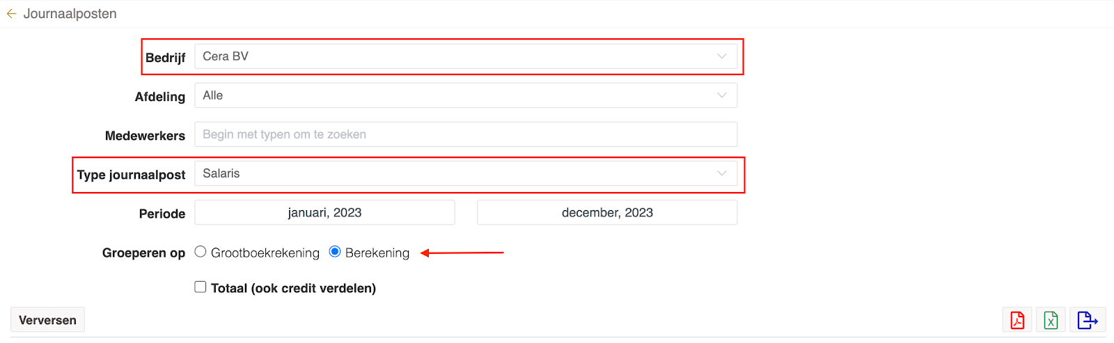 Let op: Laat de totaaljournaalposten open staan voor de vergelijking met andere rapportages.