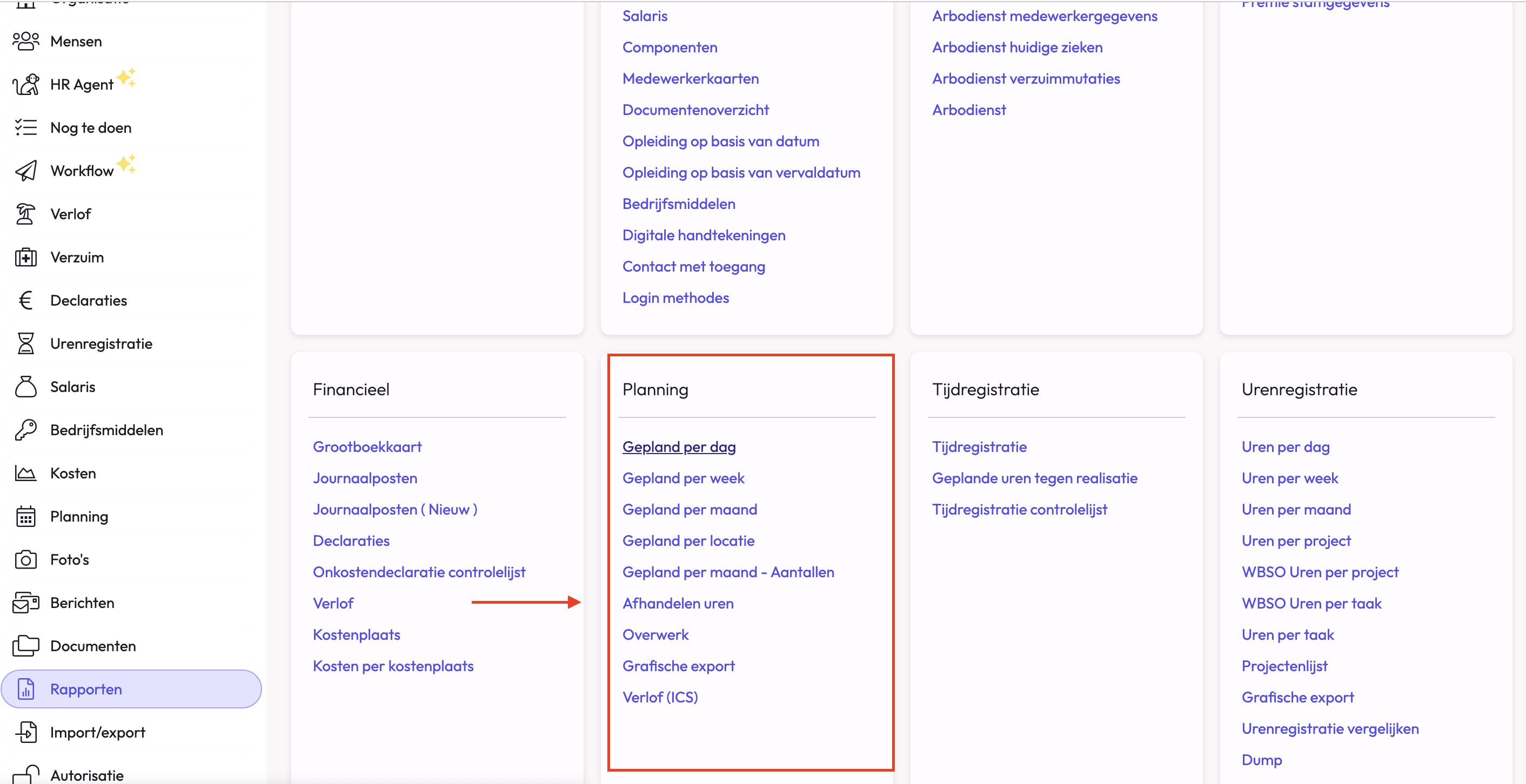 Je vindt een rapport met de afgehandelde uren onder 'Rapporten' -> Planning -> Afhandelen uren.