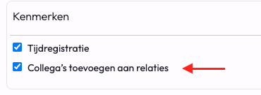- Vink hier de optie 'Collega's toevoegen aan relaties' uit.