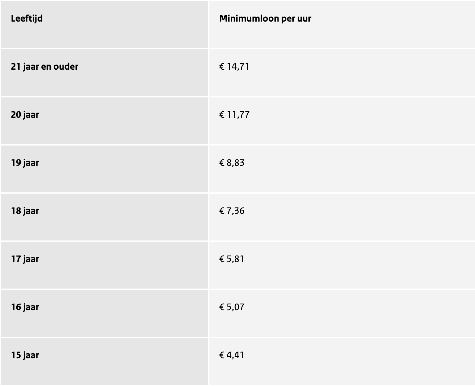 Hieronder geven we de minimumlonen op 1 januari 2026 aan op basis van het uurloon.