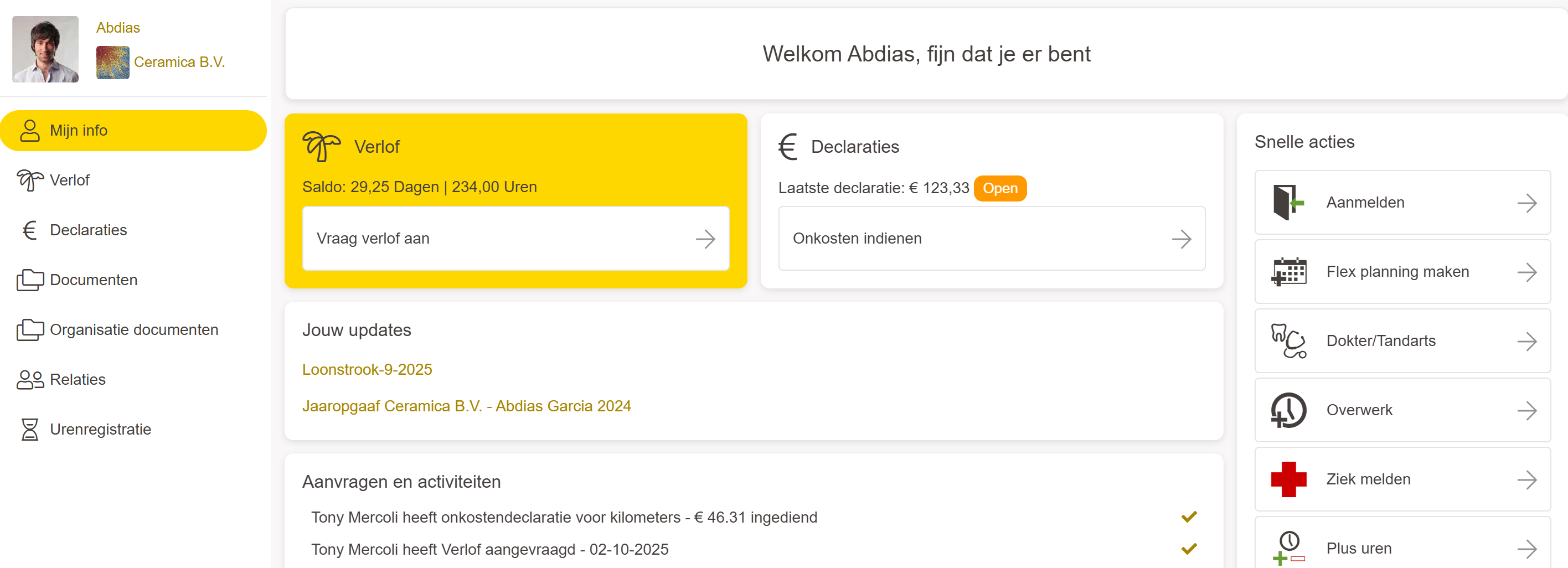 Minder klikken, meer overzicht - direct verlof aanvragen, declaraties indienen of taken afronden, allemaal vanaf één plek.