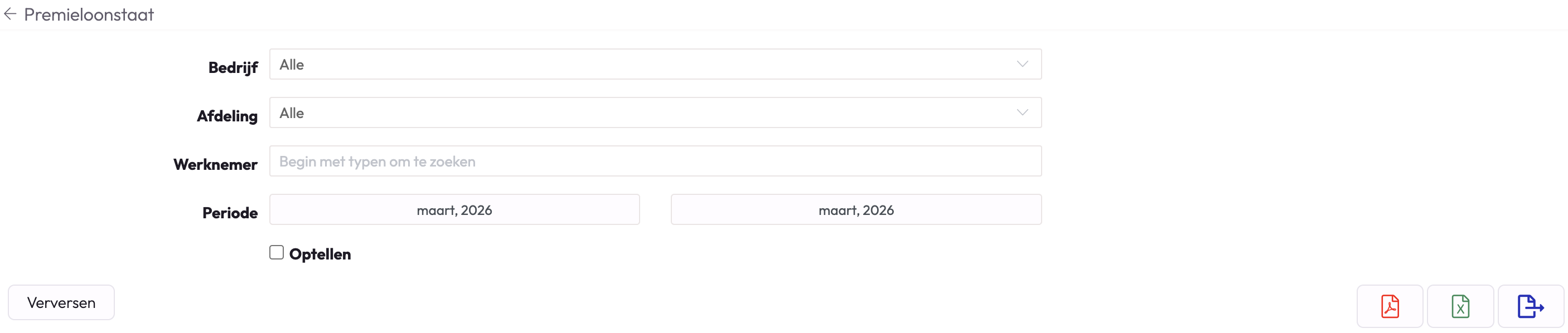De premieloonstaat vind je onder Rapporten op organisatieniveau in het blok 'Salaris'. Op de premieloonstaat vind je een terugkoppeling per periode van de berekende premies.