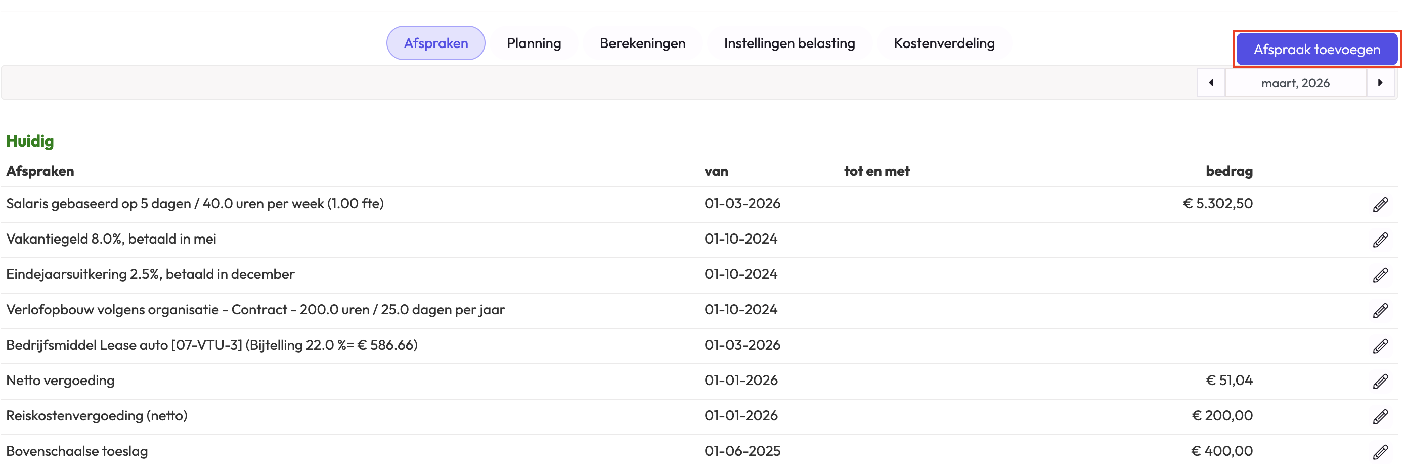 De vaste loonafspraken kunnen direct gekoppeld worden aan alle bestaande medewerkers, en ook aan alle toekomstige medewerkers. Denk hierbij bijvoorbeeld aan een netto onkostenvergoeding, of aan de WGA premie die gedeeltelijk verhaald wordt op de werknemer.