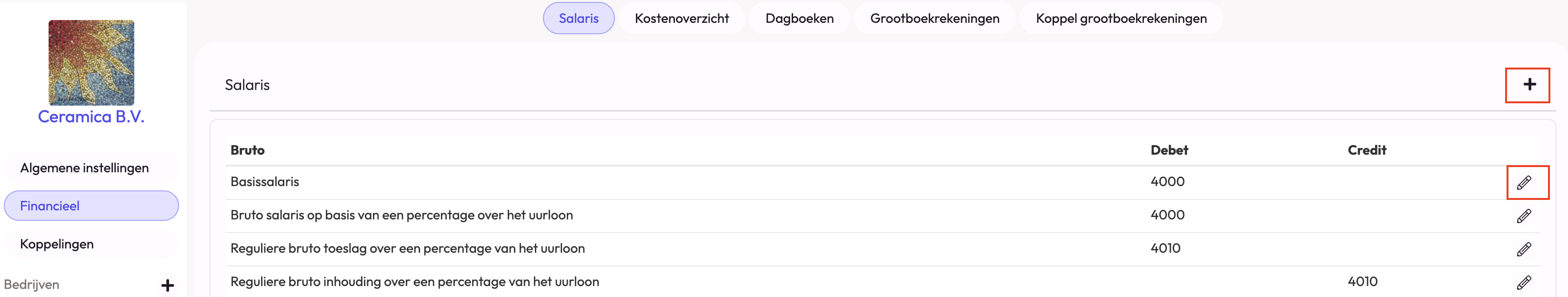 Door op het potloodje te klikken kan je een component aanpassen. Zo kun je de juiste grootboekrekeningen aan de juiste componenten hangen.