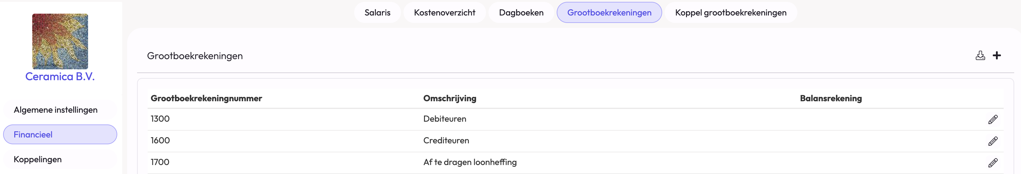 Op basis van de journaalpost kun je de verschillende grootboekrekeningen die je gebruikt toevoegen of de bestaande grootboekrekeningen aanpassen.