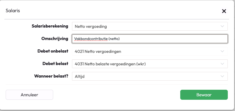 Vakbondscontributie (Netto) (type Netto vergoeding):