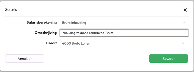 Inhouding vakbondscontributie (type Bruto inhouding):