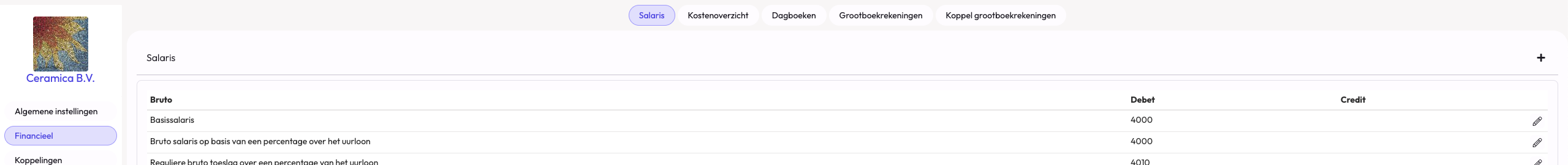 Allereerst moeten de componenten aangemaakt worden. Ga naar de organisatie instellingen en vervolgens het tabblad 'Salaris'