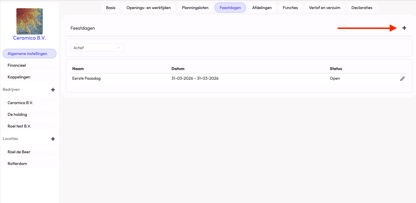 Verschillende bedrijven hebben buiten de feestdagen sluitingsdagen gedurende het jaar. Bijvoorbeeld tussen Kerst en Oud & Nieuw of de dag na Hemelvaart. Deze dagen worden als feestdag toegevoegd zodat in de planning direct zichtbaar is dat het bedrijf gesloten is