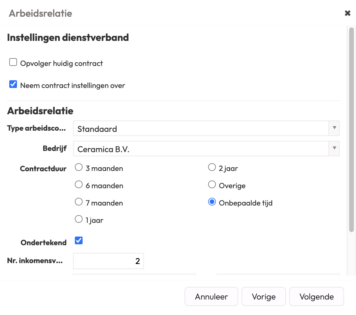 Vink in het volgende scherm 'Opvolger huidig contract' uit; er is immers een tussenperiode geweest.