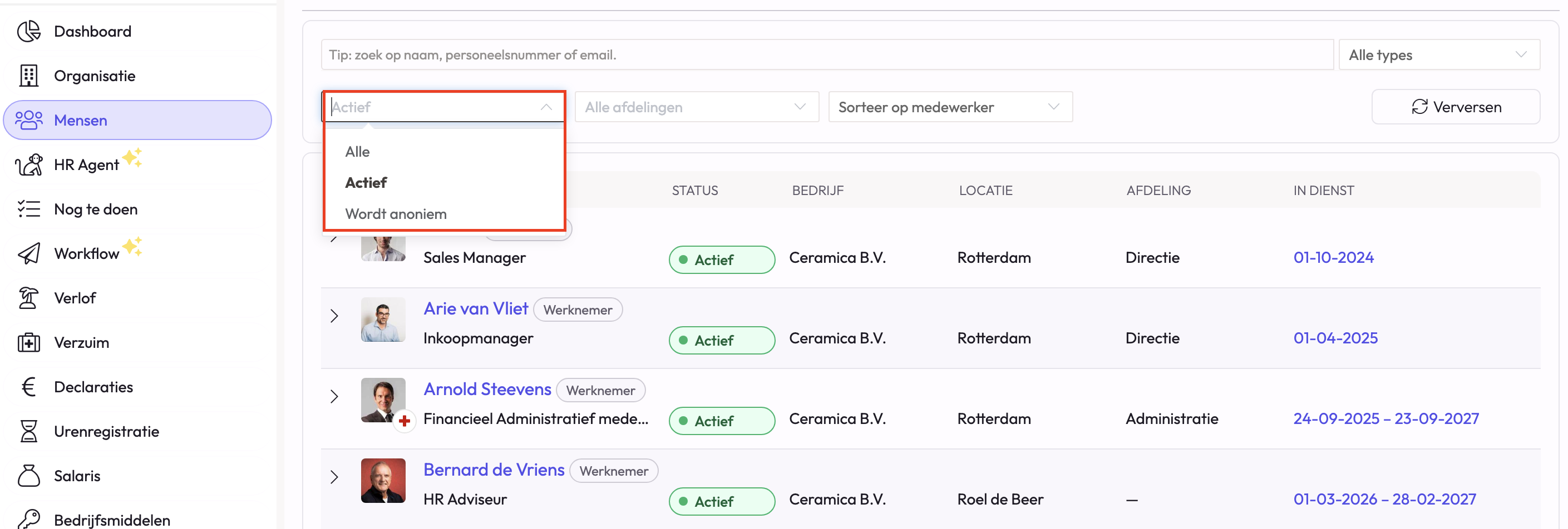 In de lijst die nu getoond wordt, zal de oud-medewerker terug te vinden zijn.