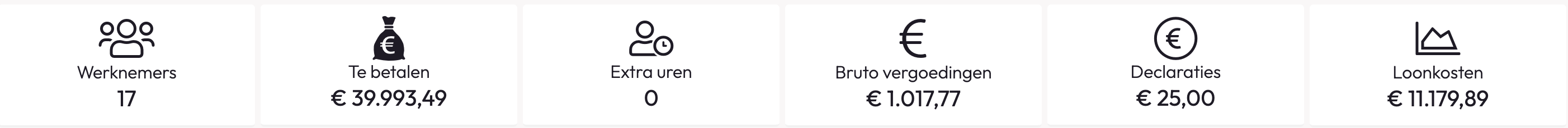 - Werknemers: hier zie je het totaal aantal medewerkers welke deze loonperiode worden verloond;